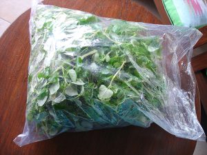 ผักกระสังที่เก็บมาเพื่อเตรียมทำอาหาร