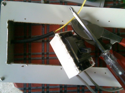 แล้วเอาแผ่นไม้อัด มาปิดทับด้านหลังของรางปลั๊ก แล้วยึดด้วยสกรู