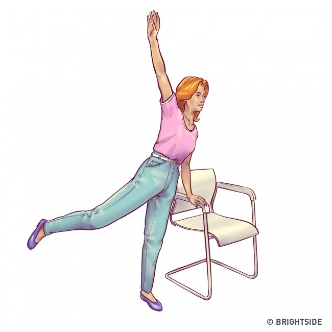 Bonus การออกกำลังกายที่ทำบนเก้าอี้ ตอนนี้เราอยากให้คุณยืนขึ้นและทำอย่างอื่นเพื่อให้ได้ผลมากขึ้น อย่าไปไกลจากเก้าอี้! การออกกำลังกายจะช่วยเสริมความแข็งแกร่งให้กับแผลเป็นของคุณรวมถึงการเผาผลาญไขมันบริเวณเอวและท้อง